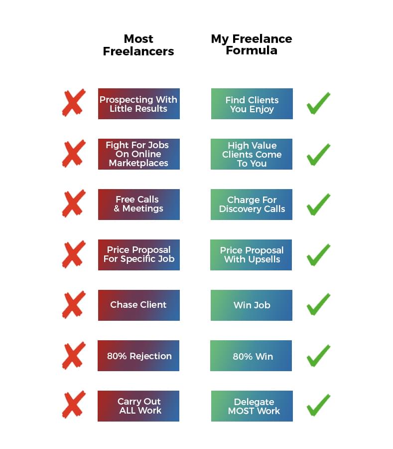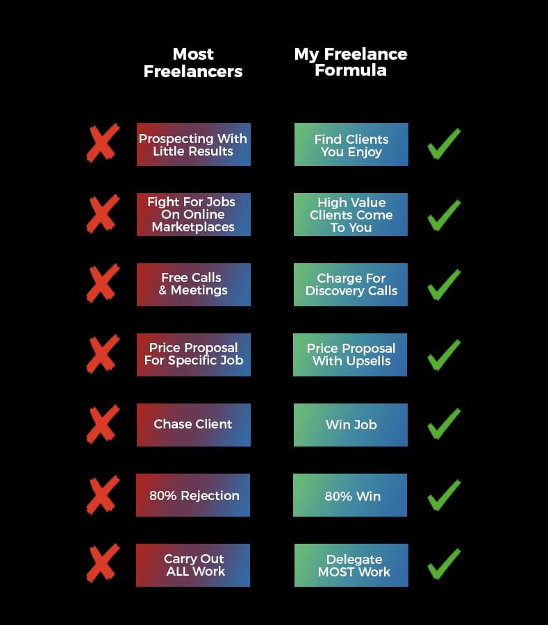 It took me several years of running my freelance agency and a lot of training to finally hone in a formula that took me to the place of success and freedom that I enjoy now.